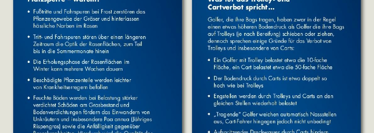 Hinweis: Auf letzterem ist es auch möglich, ohne die sonst erforderliche Platzreifeprüfung zu spielen. Es ist aber trotzdem ratsam einen bereits erfahrenen Golfer mit dabei zu haben. Die Prüfung benötigt man, um ein zügiges, gefahrloses Spiel unter Einhaltung bestimmter Regeln durchzuführen.