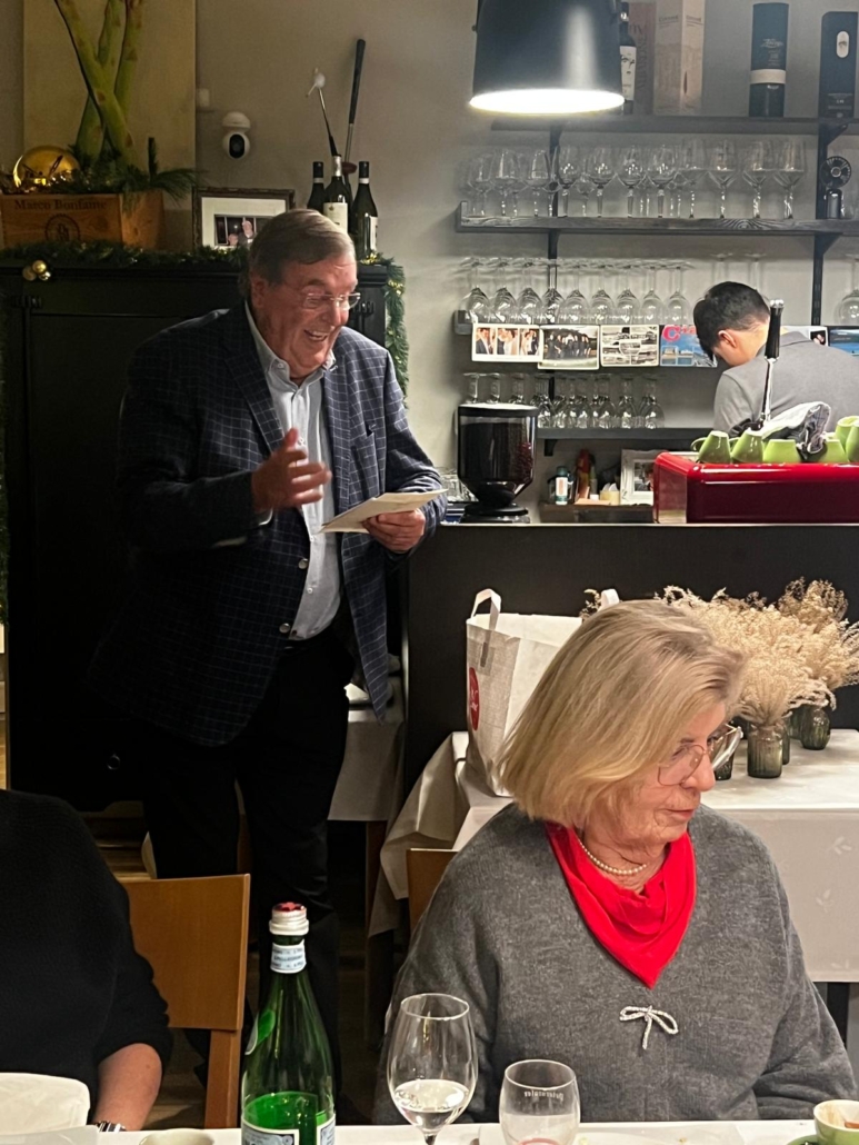 Im Namen der Verköstigten dankte Georg de Frênes mit einem kleinen Präsent allen Beteiligten für deren Planung, Chaos-Management, Teamgeist und den Mut, für so viele Feinschmecker den Kochlöffel zu schwingen.